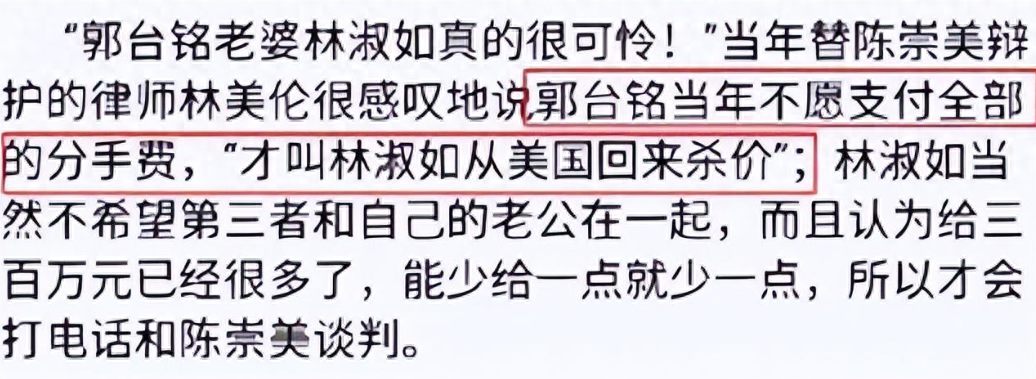 曾馨莹深知这一点,再加上不管是里子还是面子,郭台铭在与林淑如相关的事情上面都是好男人人设,处处都是把林淑如放在第一位,就连他再婚后,也多次公开说明林淑如无可替代,在他心中一直都排第一。