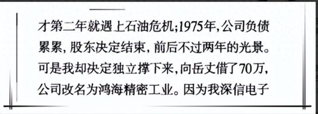 有了林淑如从娘家带来的70万,郭台铭的小公司起死回生,安安稳稳地度过了那次危机。