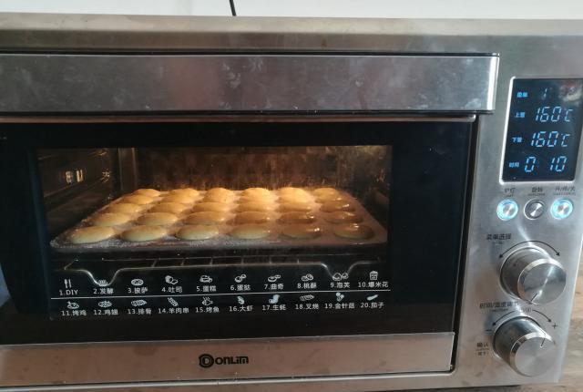 烤盘放入烤箱中层,上下火160度烤10分钟,不同的烤箱温度有所不同,建议根据常用烤箱灵活调整温度和时间。