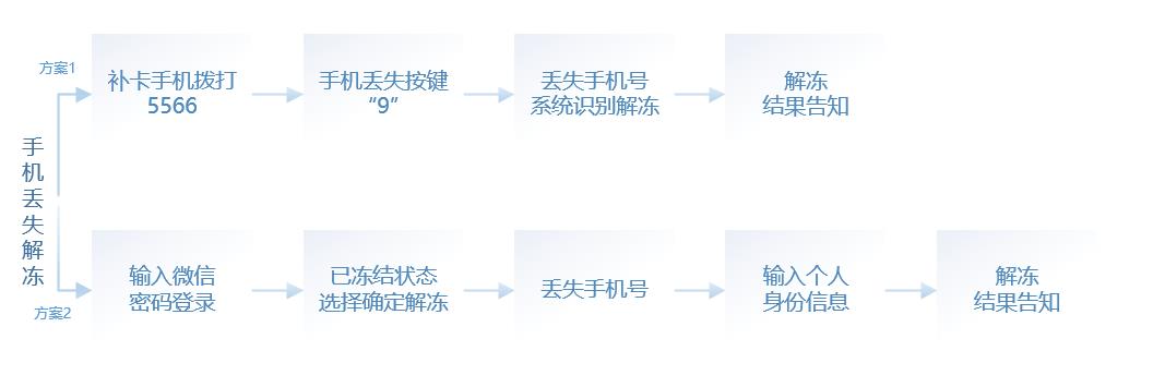 方案一:我们在买了新手机和补办卡之后,可以拨打腾讯客服热线:0755-83765566,按9号键,输入丢失的手机号。系统会自动识别解冻微信帐号,并将解冻的结果告知用户。