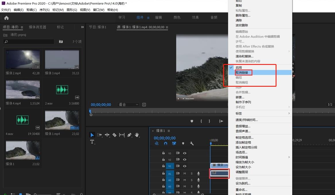 只需要把要剪辑的视频素材拖拽放入时间线,右击取消链接,然后选中视频按Delete键,点击【文件】选项卡选择【导出-媒体】,将格式设置改为MP3,这样就可以只留音频了。