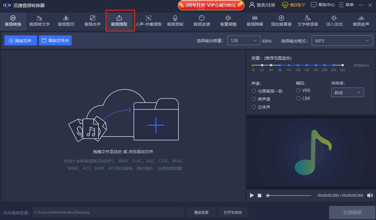 一站式高清音频转换剪辑软件,音频转换、剪辑、录制、提取通通都能搞定,支持批量转换,一次性可上传多个文件,能有效提高转换效率,还支持输出高清音质。