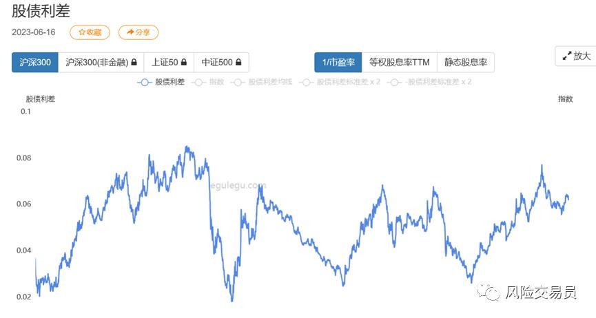 股市也一样,一方面是估值,估值就是绝对价格,另一方面是股债利差,利差就是相对价格,也就是下面的两张图。