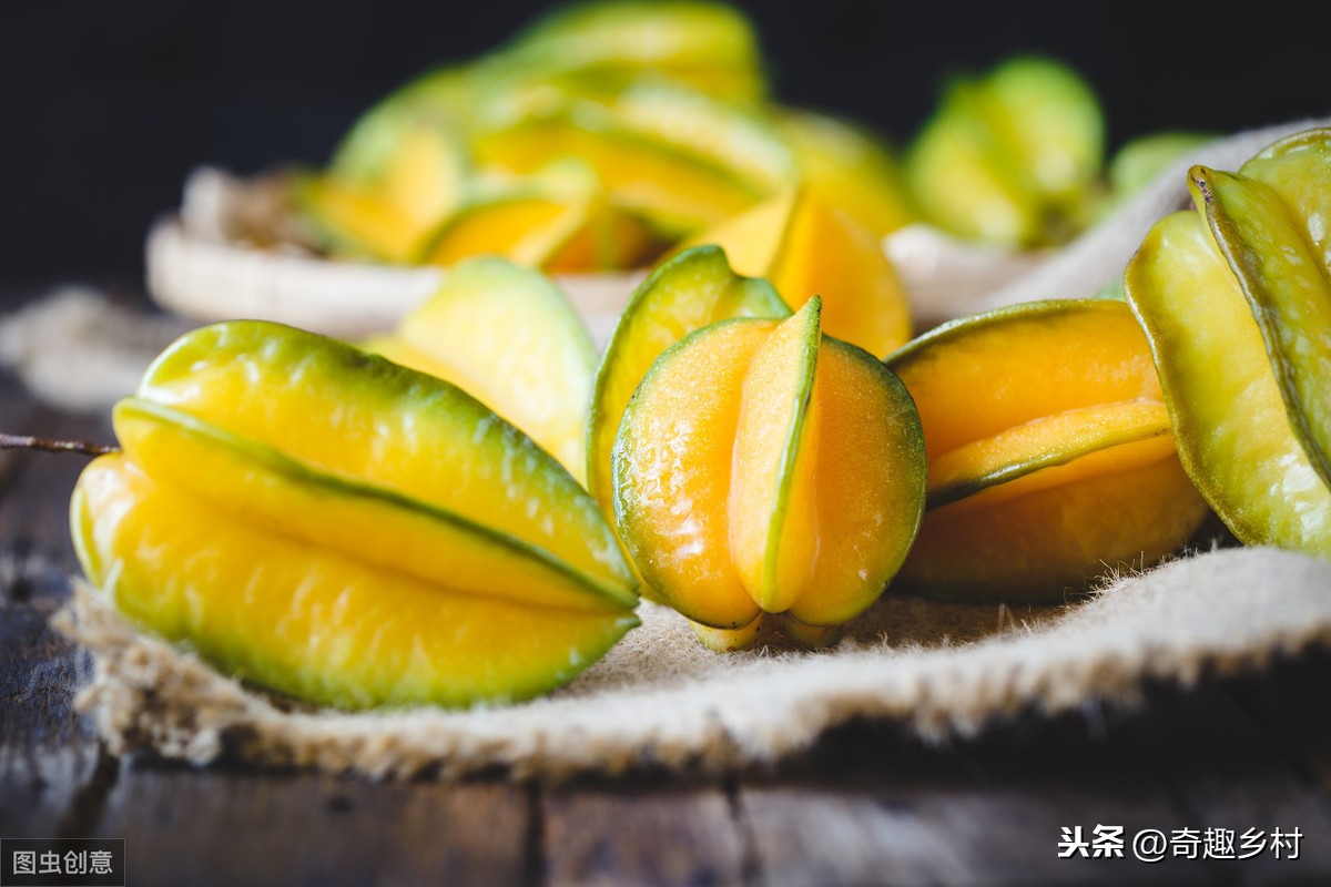 杨桃很多人都吃过,切开呈现为五角星图形,可爱极了,味道酸甜可口,是小朋友的最爱。