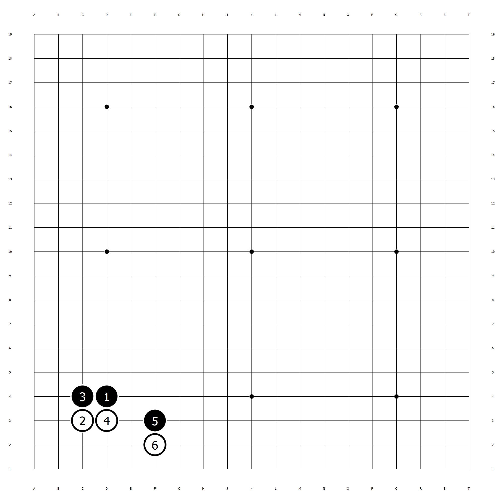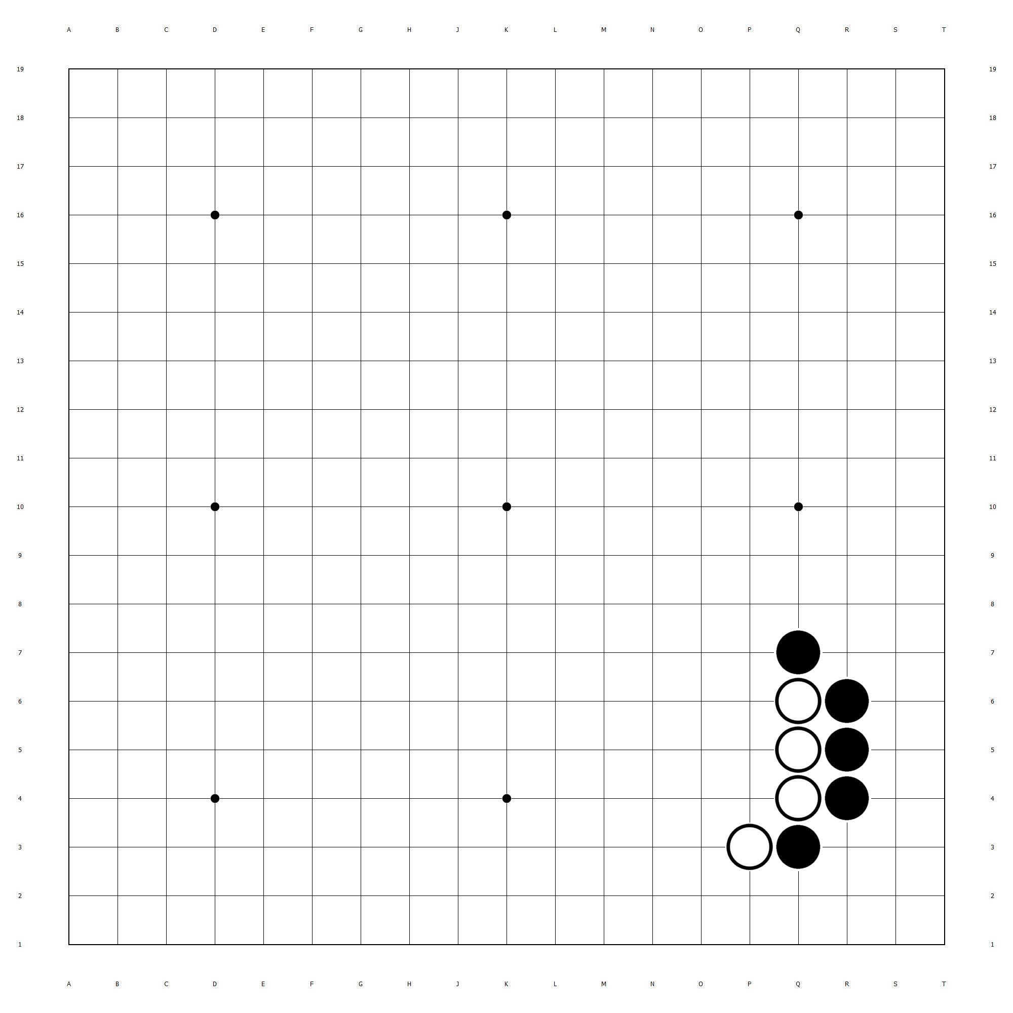 1957年以前,大雪崩都是外拐的,一直到这这一年的2月20号,吴清源VS高川格,然后下出了左拐的图形,这种,大家都下内拐,然后你下外拐,最后还被证明是可行的,然后中间可能分支变化上还埋伏几手棋,这种就是飞刀研发的过程。