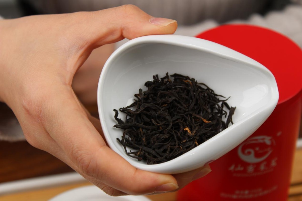 茶叶外观紧结壮实,条索紧细卷曲,叶片肥厚匀整,茶叶上无杂质,茶叶颜色呈黑褐色,鲜亮油润,冲泡后叶片逐渐柔软,茶汤变得馥郁红润,细细品上一口茶汤醇厚甘甜,喉韵十足,香气高扬持久,久泡不失醇香。