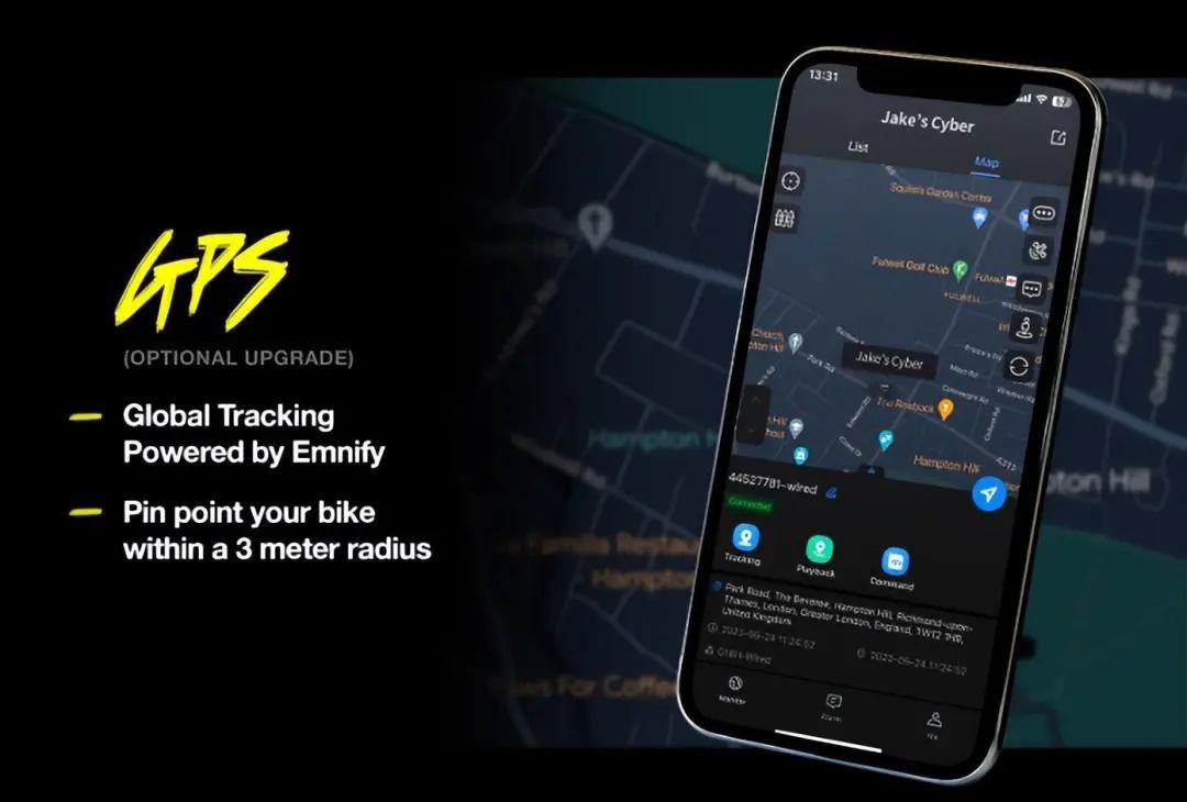 WAU CYBER 还提供了自动防盗器和电子钥匙,并可以选配全球GPS跟踪系统Emnify,如果车辆丢失,自带的 GPS 能够通过应用程序进行跟踪并帮助寻回。因此,很多媒体把这辆车誉为电动自行车的“特斯拉”。