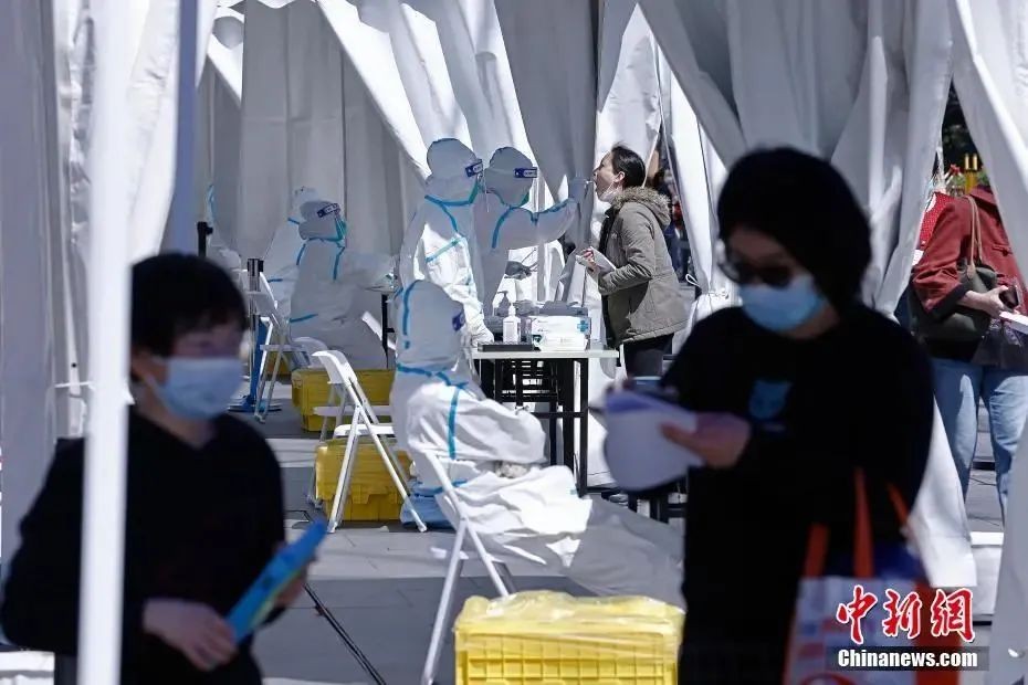 资料图:上海市徐汇区襄阳公园临时核酸检测采样点。