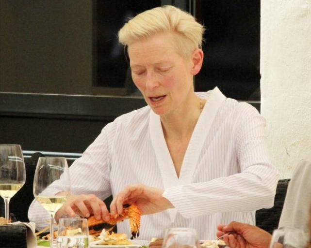 当天蒂尔达·斯文顿还与随行人员一同用餐,在餐桌上她食欲大开品尝了多种美食。不过在当时的镜头下可以看到蒂尔达·斯文顿脸部是非常消瘦,额头和口鼻周围的皱纹也是清晰可见,不知这些皱纹是否因为她过于纤瘦而导致,整个人老态明显。
