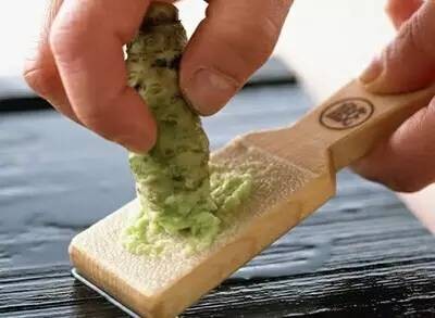 吃生鱼片时,千万不要把山葵混在酱油里,否则山葵的辛辣味会被酱油消除不少,无论是吃刺身还是寿司,绝对不能让山葵沾到酱油。吃刺身的正确方式,是先在刺身上抹一点山葵,然后用另一面蘸点酱油,希望大家记住。