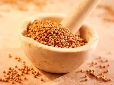 看清楚,芥末实际上长这样,我们常说的芥末其实是用这些芥菜籽研磨而成的调味品,之所以我们把山葵、辣根、芥末混在一起,其实是因为它们的冲鼻味道非常相似。