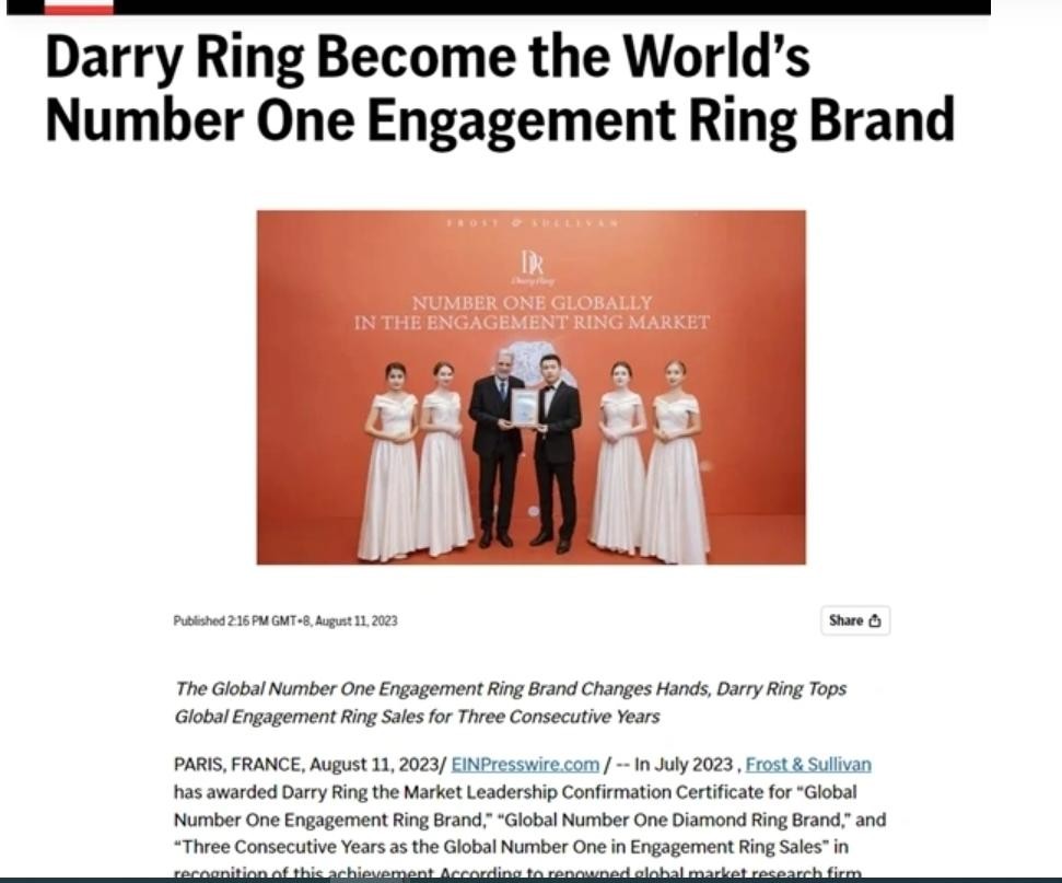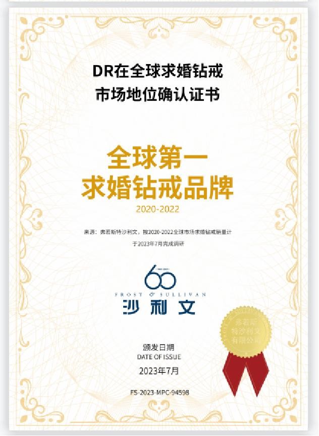 现如今,DR钻戒也已经成为「全球第一求婚钻戒品牌」。