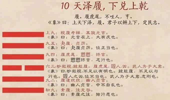九三变阴之后,履虎尾,咥人。不整天警惕的结果就容易踩到老虎尾巴,被老虎所吞噬。