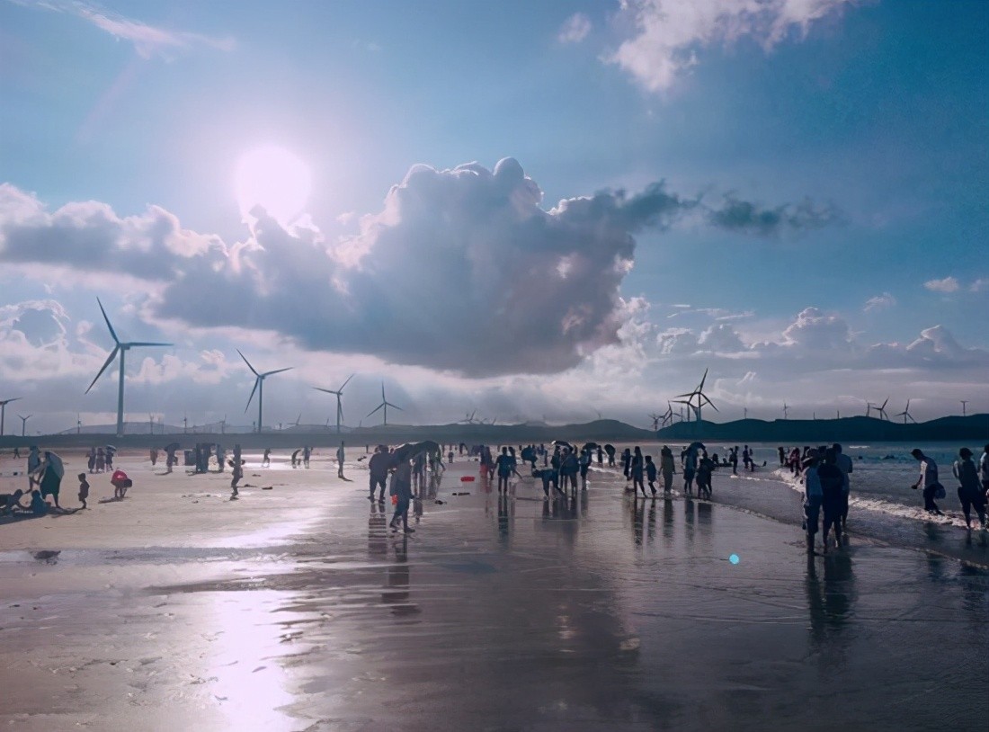 强烈建议傍晚去。听我描述一下你就知道了,傍晚的海滩,夕阳倚着天际逐渐往海中靠拢,一排排风车在余晖中转动着,宁静而深邃。海浪拍打着细沙,褪去后一排排脚印浮现在眼前,和朋友或爱人吹着海风,看着海浪,吃着美食,这是多么惬意的事。运气好还能看到蓝眼泪。给大家一个建议,带上外套,不然惬意后就是感冒!