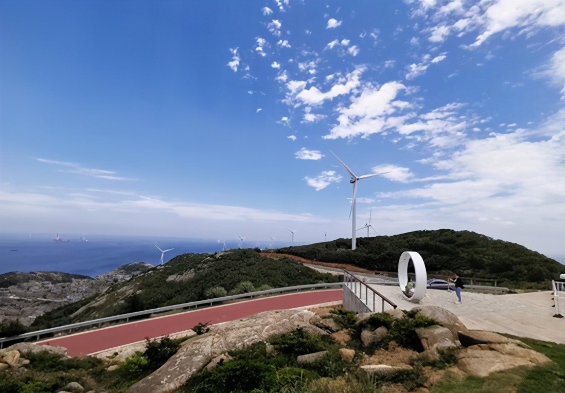 非常适合摆拍的一个地方,租一部小电驴或者自行车就可以绕着跑道走一圈,这里人相对小,远看有风车随风转动,公路绕山而建,一边是青葱的山岚石厝,一边是层叠起伏的海上梯田,在阳光的照射下海天连成一片蔚蓝色,像极了台湾电影里的场景,适合文艺青年驻扎。
