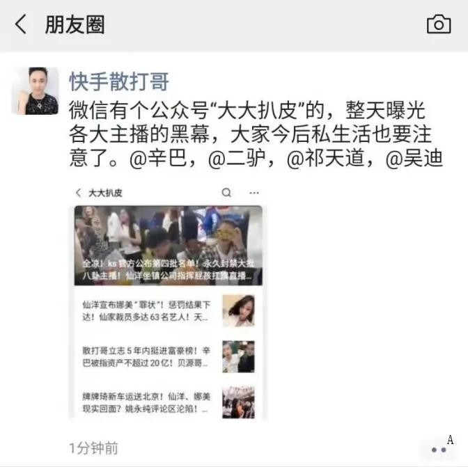 散打哥深夜发圈告知各个主播,注意私生活,线上线下都有人监督!