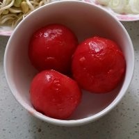 番茄洗干净,用热水烫一下,注意不要时间太长,这样番茄皮就比较容易去掉,这样做番茄酱的口感更好。