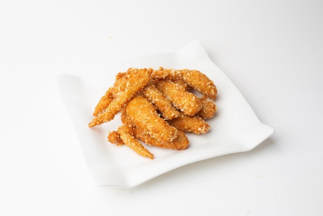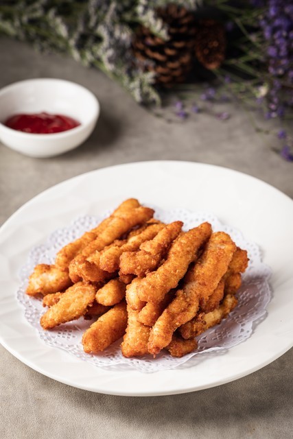 接下来,将腌制好的鸡柳裹上一层面包糠,这不仅增加了炸鸡柳的口感,还能让外皮更加酥脆。然后,将鸡柳放入已经加热至适当温度的油中炸制。油温控制在中火,保证鸡柳外皮快速成型,内部鸡肉熟透而不干硬。