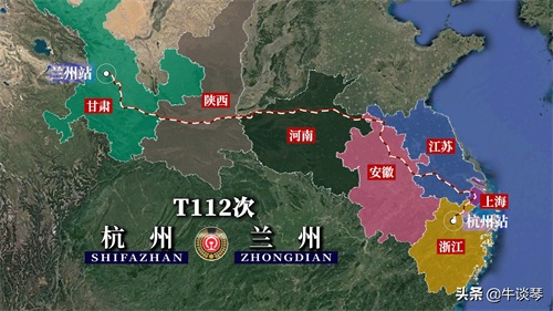 T112次列车运行线路图:浙江杭州开往甘肃兰州,全程2355公里
