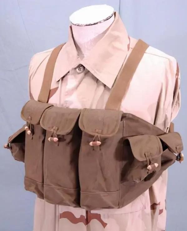 步兵之所以喜欢胸挂式弹匣袋,是因为只能装三个弹匣袋子弹带较轻,身体负重少。但胸挂式弹匣包裹者前胸和肚子,夏天闷热不舒服(打仗可以做为防弹衣使用),容易长痱子。
