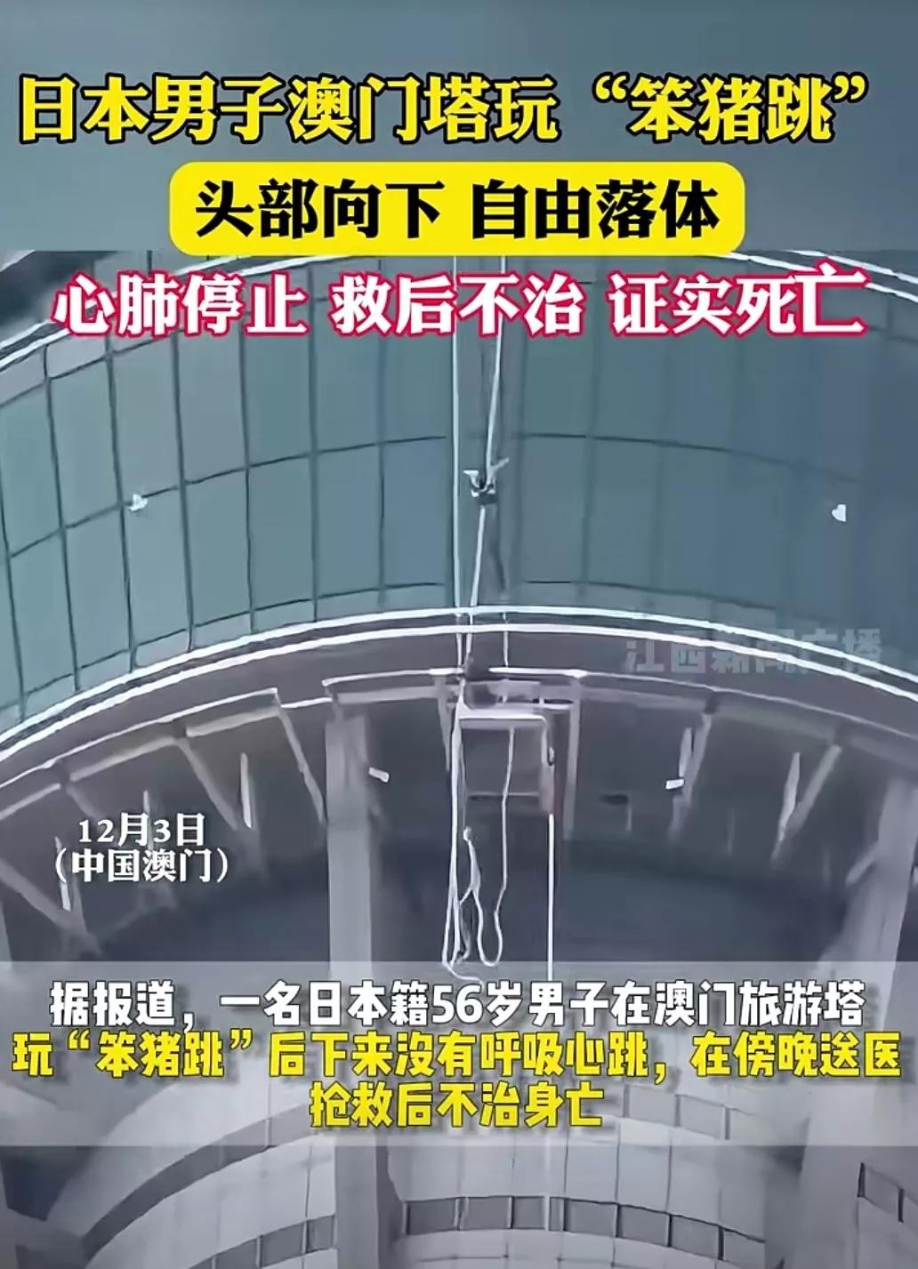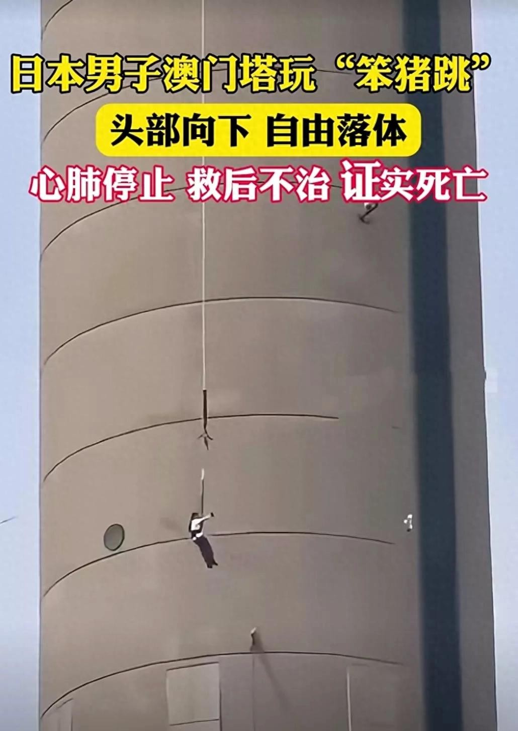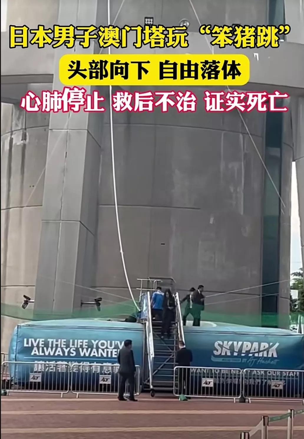日本男子澳门玩笨猪跳,头部向下,经抢救心肺停止,已证实死亡。