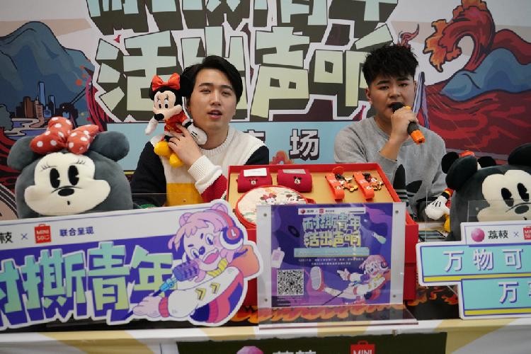 12月31日下午,由名创优品与荔枝跨界联名的“耐撕青年 活出声响”4小时不断电留声馆在广州、重庆、苏州三城同时营业。重庆的活动现场就设置在观音桥。