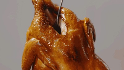 这道菜的制作过程并不复杂,只要掌握三步:鸡皮水的调制、鸡的风干(家里可以在风扇下吹5-6小时)、最后的炸鸡。在家也能做出餐厅同款脆皮炸子鸡。