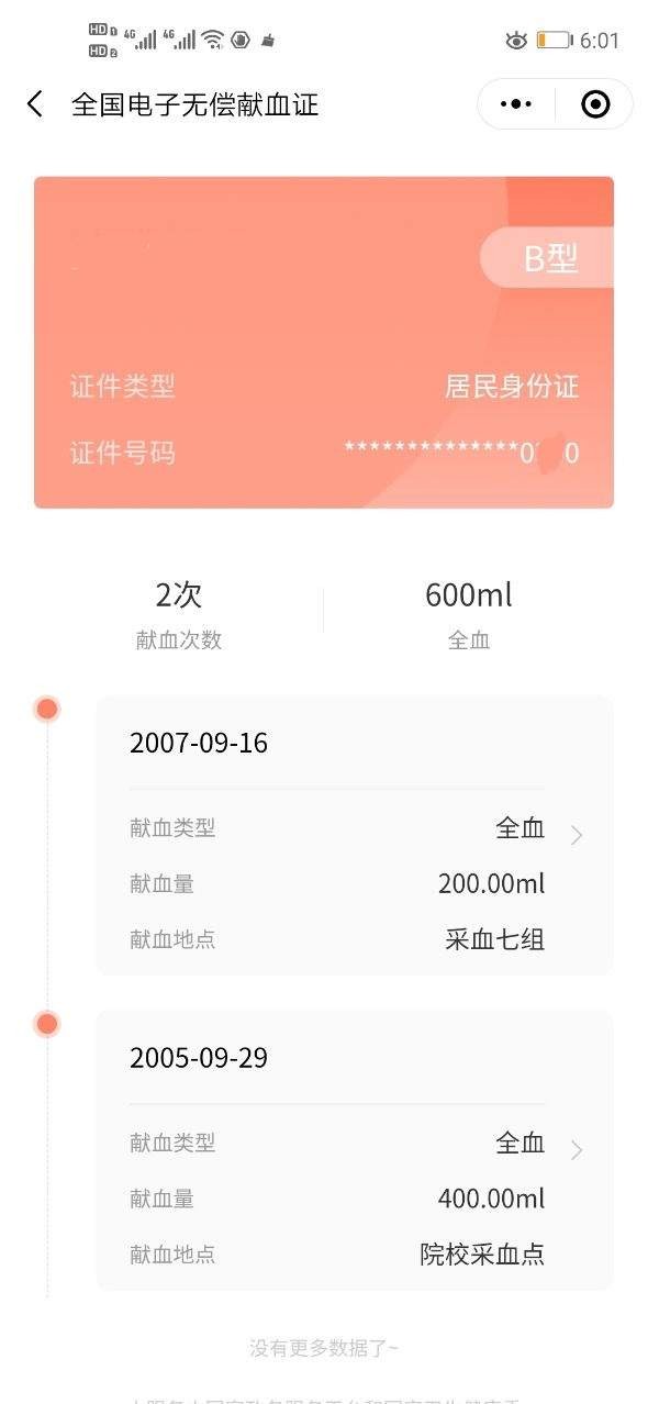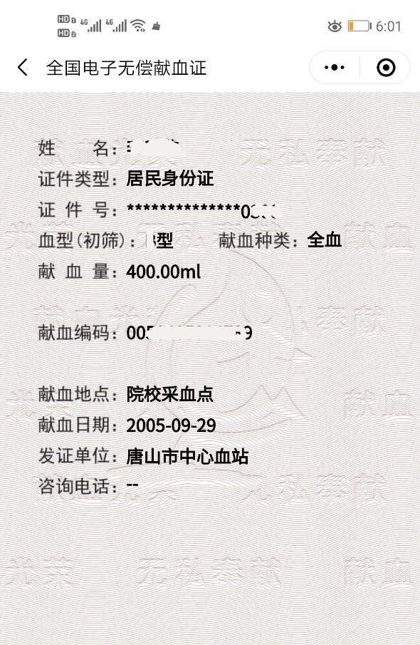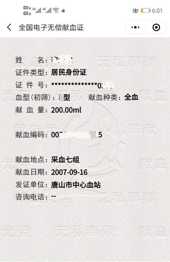 个人电子献血证