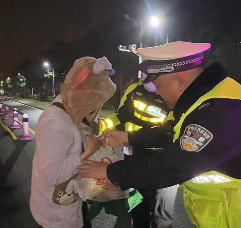 许昌市公安局交通管理支队民警甄忠杰介绍,1月25日零时许,他和同事在京港澳高速许昌段巡逻时看见一辆面包车停在应急车道上,护栏外站着三人,夹杂着雨夹雪的寒风吹得他们直打哆嗦。