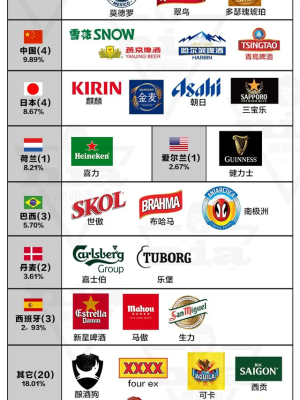 之前分享了一份某品牌咨询机构统计的数据,按市场占有率统计的全球前50个啤酒品牌。