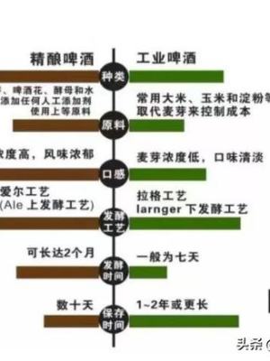 发酵时间短,保存时间长,适合保存和运输,而用艾尔(ALE)工艺发酵的啤酒则发酵时间长,保存时间短,不适合规模化生产,但口感更多元,因此被称为”精酿啤酒“(精酿里也有ALE发酵的品牌)。