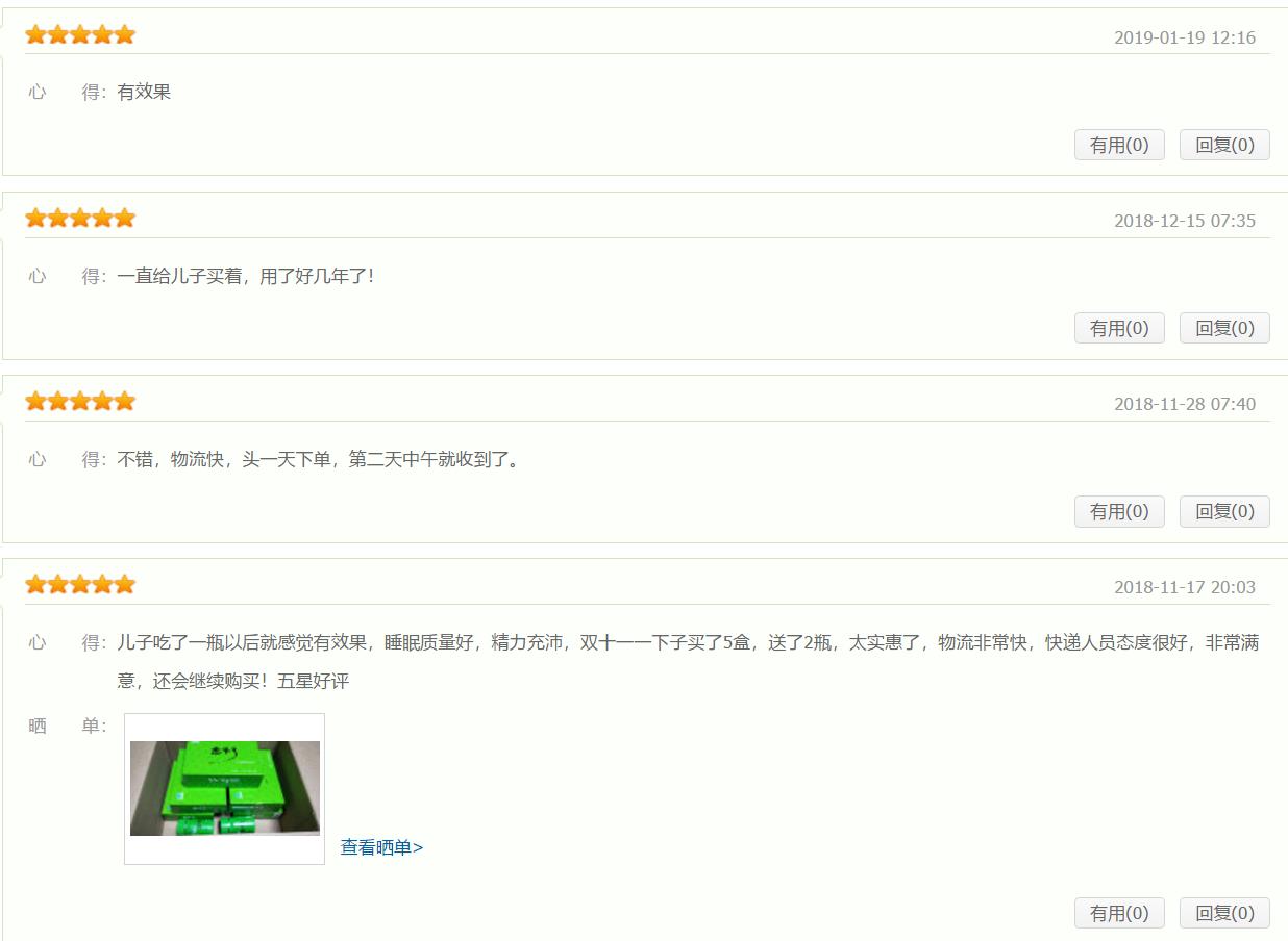 “从儿子上高三起第2次买了,儿子说吃了以后上课不困了,记忆力也明显改善,只要是对孩子有益,还是会坚持孩子服用的。”