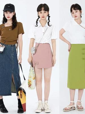 高腰的A字形半身裙,下摆开叉的剪裁,清爽利落。配上个性的方领T恤,也是一种很减龄的风格。特别适合一些喜欢甜系少女穿搭的姑娘,减龄又时尚。