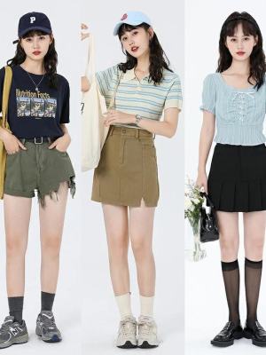 炎热的夏天里,适当的露肤不仅小个子更加惹眼,也特别的清爽。甜系少女穿搭,自然更加注重露肤的大小。比如大领口的T恤,或者高腰的短裤/短裙,都是特别百搭又清爽的单品。