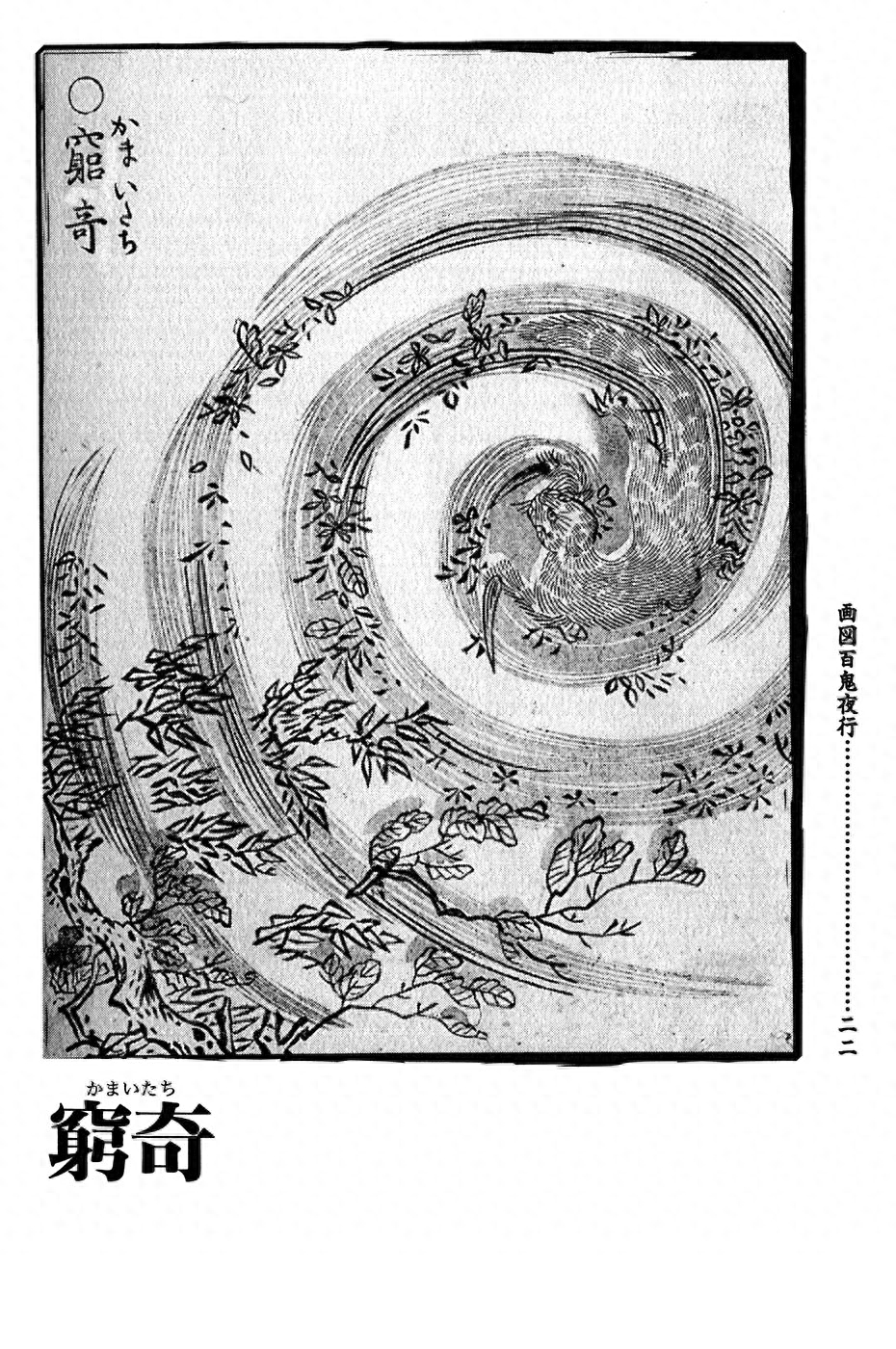 最后一提的是,后来穷奇也传播到了日本,在那里演变成了一种外形如鼬,长着如镰刀般锋利爪子的妖怪。这种妖怪通常隐藏在风里,伴随着大风吹过,割下树木的枝叶,或割伤人的皮肤,也被称为“廉鼬”。
