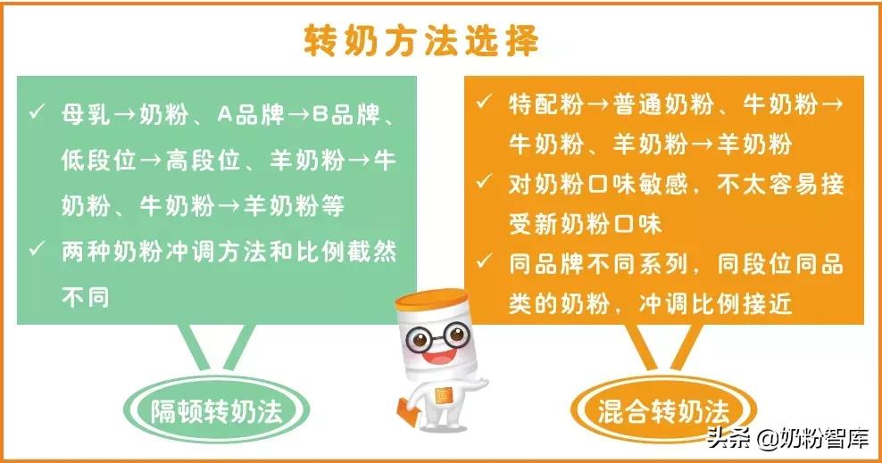 母乳转奶粉、奶粉换品牌、羊奶粉转牛奶粉、牛奶粉转羊奶粉、低段位转高段位、两款奶粉冲调比例截然不同等。