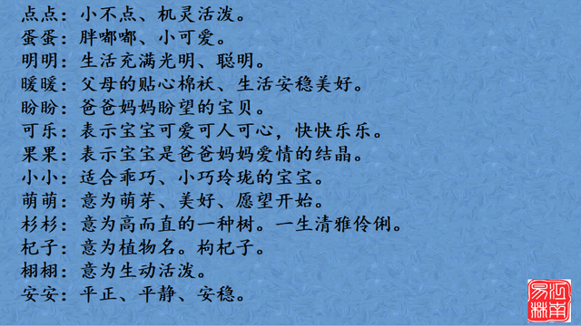 相对于姓名男,宝宝小名没那么多忌讳,没那么多讲究,有趣的爸妈也都是脑洞大开,比如:邓超儿子“等等”,夏雨女儿“哈哈”,霍思燕儿子“嗯哼”,黄磊可爱女儿“多多”,都是趣味十足名字。想不记住都难。江南易林整理的趣味起名法,看看有没有兔年适合宝宝的?