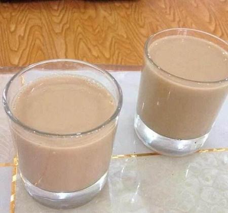 2、冲泡奶茶:在茶汤中加糖搅匀,然后取一支有深度的汤勺,先把茶汤尽量往高舀,再将牛奶缓缓倒入茶杯,重复舀汤直至奶与茶完全融合为止(低难度模仿“拉茶”)。