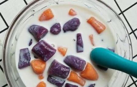 (4)珍珠的制作方法跟芋圆很类似,所以,想要制作芋圆的,可以用红薯、紫薯、南瓜等蒸熟捣成泥,趁热加入适量木薯淀粉,揉至光滑的团,然后搓成长条,再切成跟大拇指指节一样大小的芋圆即可,再用开水煮熟,一般芋圆浮起来了就表示熟了,再加入奶茶中,芋圆奶茶也制作完成。