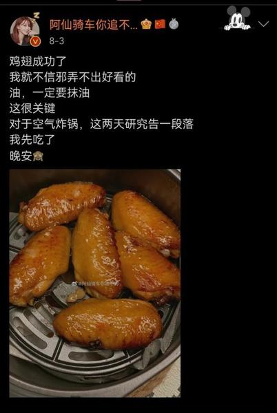 宣布离婚的前7个小时,郑云灿还在晒用空气炸锅自己做的鸡翅,看起来心情不错,没有一丝离婚的征兆。
