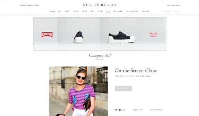 stil in berlin 算是一个综合类街拍网站,不仅有照片记录好看的人,也有柏林的吃喝玩乐好去处。如果一名文艺青年要去柏林游玩,多看看这个网站一定不会错。