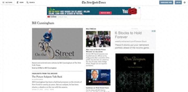 被称为“街拍鼻祖”的摄影师比尔·坎宁汉(Bill Cunningham)在街拍界的声誉已不必多说,从60年起。他就开始捕捉大街上那些时髦的瞬间,在纽约时报上发表的每周专栏“On the street”更是记录了纽约时尚几十年间的转变。