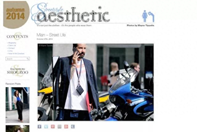 时尚摄影师 Wayne Tippetts 自2008 年起便开设个人街拍博客,并常年游走于巴黎、米兰、伦敦等时尚之都。博客里干净清爽,除了街拍还是街拍。