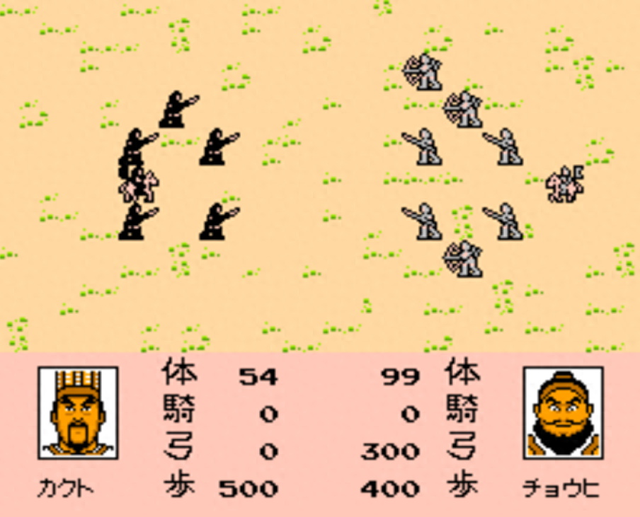 同样,两军交战时,也是1P白色,2P黑色,这里为了更快的截图,所以选的是刘备和袁绍,真正是两人玩的话,应该不会出现郭图和张飞交战的情况。