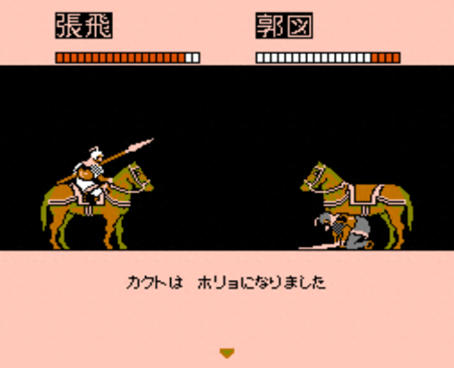 两将单挑时,除了攻击,菜单里面还有一个选项是下马投降,这个当年培养高武力武将智力时会用到。两个玩家玩的话也是可以用到的,就是之前所说,相互交换武将,进入单挑时直接投降就好了。