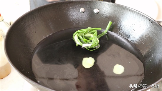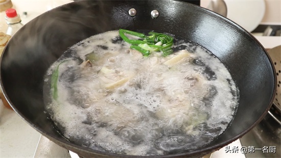 6.锅中加入清水,放入一个小葱结,几片姜片,加入一点料酒去腥。