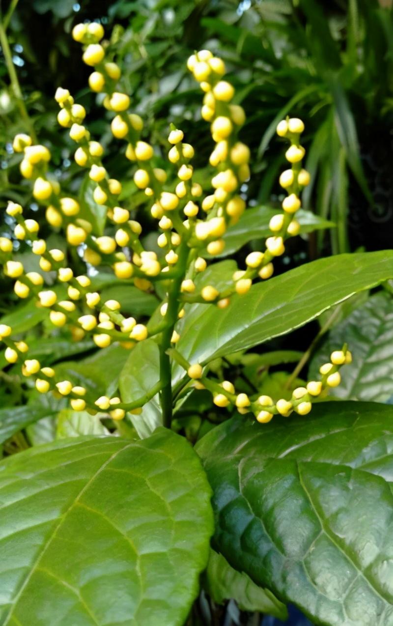 原名金栗兰,实为金栗兰科、金栗兰属的一种多年生草木,植株终年常绿,株幅约60公分左右。花期正值每年的8~10月,天高云淡、大雁南飞、秋高气爽,那时植株将于穗状花序的顶端,萌生出小小的黄花,周身萦绕着馥郁的香气。