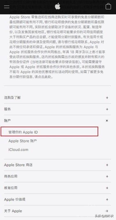 第一步:进入苹果官网,选择并点击管理Apple ID(如下面图片所示)。