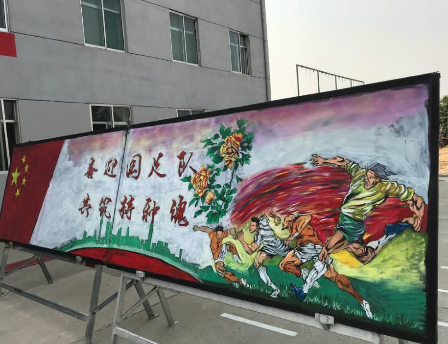 该特战旅通过多种方式欢迎了国足集训队的到来,有‘喜迎国足队,共筑特种魂’的漫画,还有‘向国足运动健儿致敬’‘今朝泰山磨练,明日赛场逞英豪’等横幅。