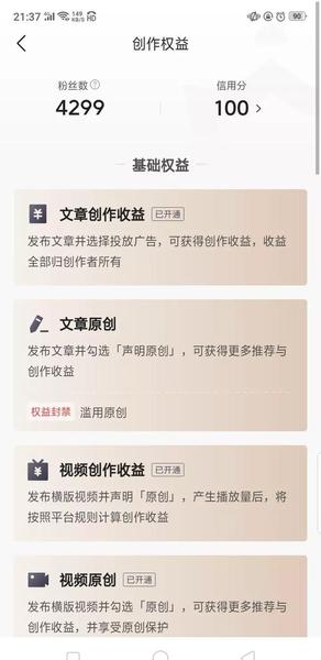 在头条的100里收获了四千多个粉丝,真的,涨分特别快,基本每天都有好多友友关注我,谢谢你们的关注,被扣分的那段时间里,本想注销不玩头条了。最后去注销头条说里面有钱,不能注销,后面就当是朋友圈,在头条写写微头条,看看新闻,看看短视频什么的,因为我现在不可以写文章了,我的文章原创功能可能已经被头条永远关了,请看图